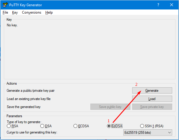 Выбираем в параметрах ключ EdDSA (он более современный, стойкий, и короткий)